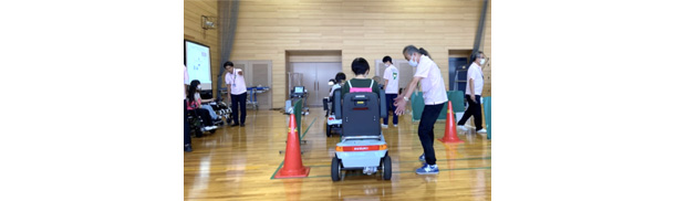 京都市が開催した「令和7年度 電動車椅子の講習会」に参加致しました。受講の方は交通ルールや基本操作説明を受けた後、スロープや段差、スラロームなどを設定したコースを走行されました。受講の方に安全利用資料を配布しました。